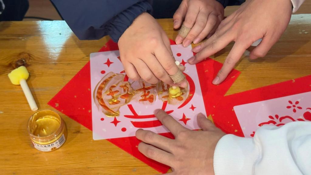 正值元旦新年来临之际,志愿者们与特教学生携手拓福,欢乐迎新,为本次汇报活动增添了浓浓的节日氛围。活动现场,志愿者们手把手指导特教学生们蘸墨、拓印。在志愿者的耐心协助下,一幅幅带着墨香的福字、一张张印着吉祥图案的年画陆续完成。每一幅作品都承载着孩子们对新年的憧憬与祝福,每一个笔触都饱含着志愿者与特教学生之间的温情与默契。活动最后,全体参与人员携手并肩,共同合影留念,镜头将这份温暖与满怀期许的希望永远定格,为本次数字技能志愿授课成果汇报活动绘就了圆满句点。